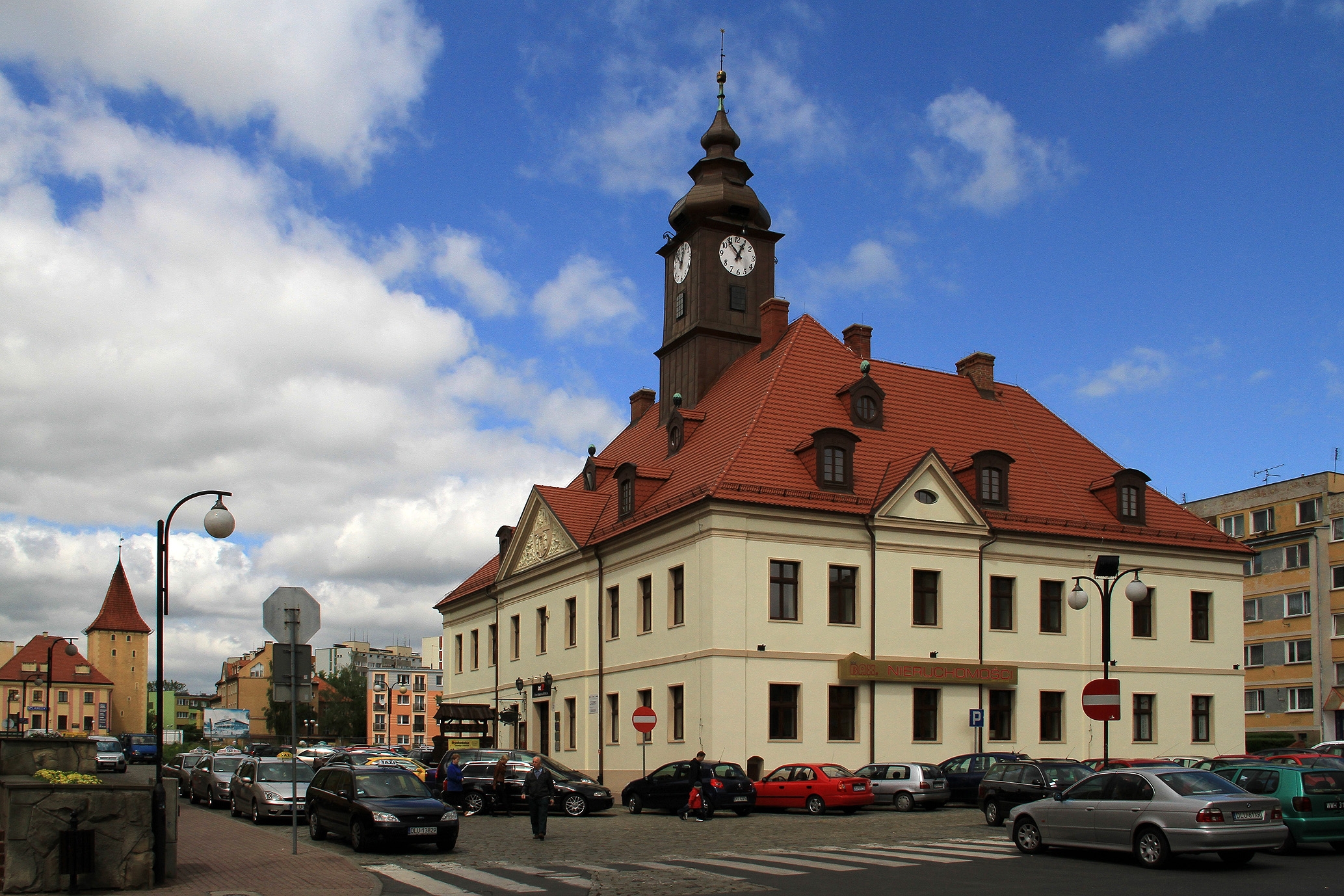 Rynek w Lubinie jest jak kompas – prędzej czy później wszystko prowadzi właśnie tutaj. Centralny plac otaczają odnowione kamienice, w których widać ślady dawnych epok, choć większość z nich została pieczołowicie zrekonstruowana po wojennych zniszczeniach. Ratusz z drugiej połowy XVIII wieku, utrzymany w późnobarokowej formie, wyróżnia się smukłą wieżą i elegancką fasadą, która szczególnie efektownie prezentuje się w popołudniowym świetle. We wnętrzu mieści się Muzeum Historyczne, więc w kilka minut można przejść z miejskiego gwaru do klimatu ekspozycji poświęconych lokalnym dziejom. Sam rynek żyje przez cały dzień – rano dominują tu mieszkańcy załatwiający codzienne sprawy, w południe dochodzi do głosu turystyka, a wieczorem pojawia się bardziej kameralna atmosfera. Uwagę zwraca układ przestrzenny, wciąż wyczuwalnie średniowieczny: prostokątny plac, sieć ulic wychodzących z narożników i bocznych pierzei, wąskie przejścia między kamienicami. W ciepłe miesiące ratusz i otaczające go fasady odbijają się w szybach ogródków kawiarnianych, tworząc wrażenie małego, dolnośląskiego miasteczka z południową, nieco wakacyjną energią. To także dobre miejsce, by „złapać” rytm miasta – zobaczyć, jak przeplata się tu górnicza codzienność, akademickie klimaty i lokalny patriotyzm związany z Zagłębiem Miedziowym. Kilka kroków od rynku można wciąż natrafić na fragmenty dawnego układu urbanistycznego, które przypominają, że Lubin był rozwiniętym ośrodkiem miejskim już w średniowieczu, z cechami rzemieślniczymi i intensywnym handlem.